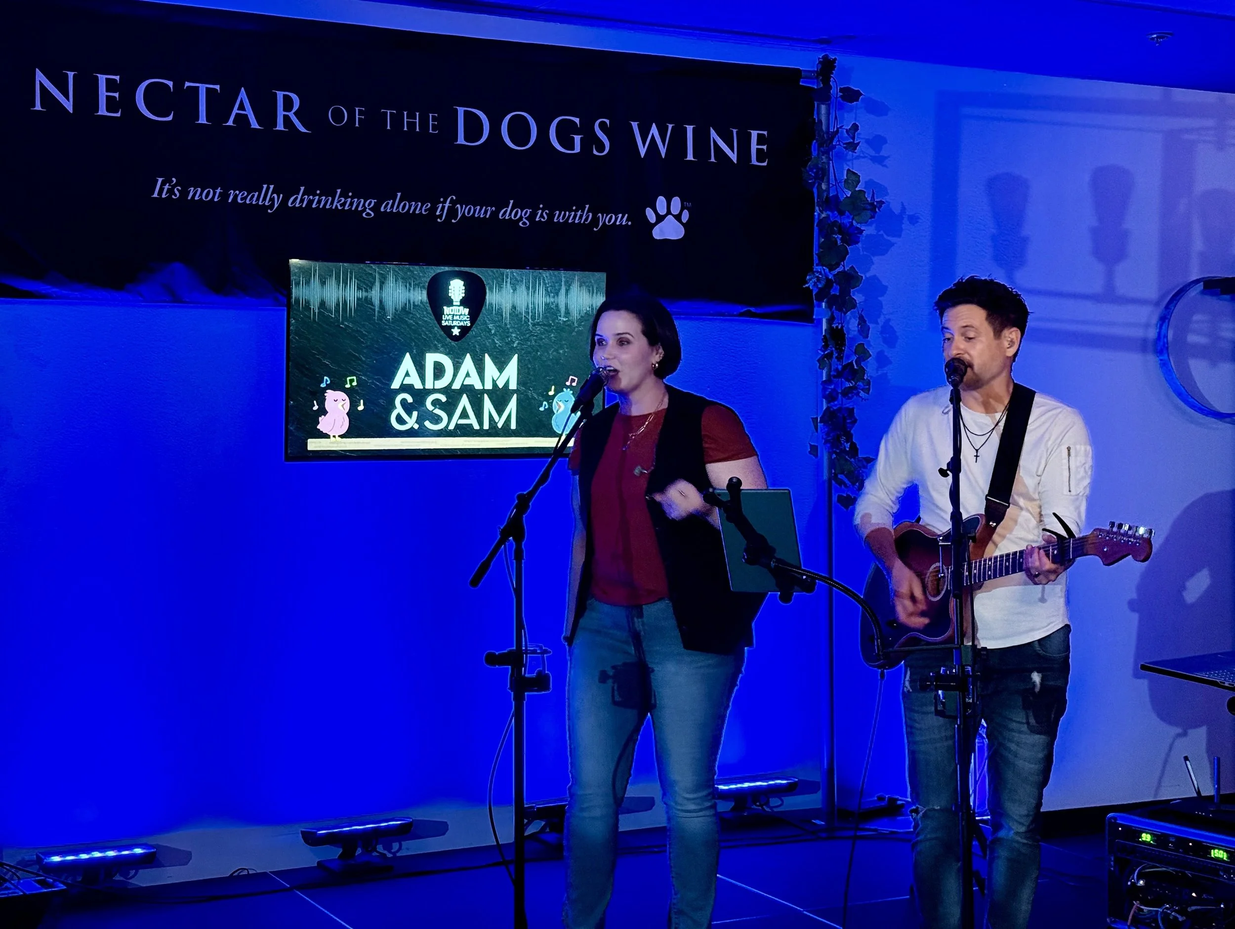 Adam & Sam singing on stage