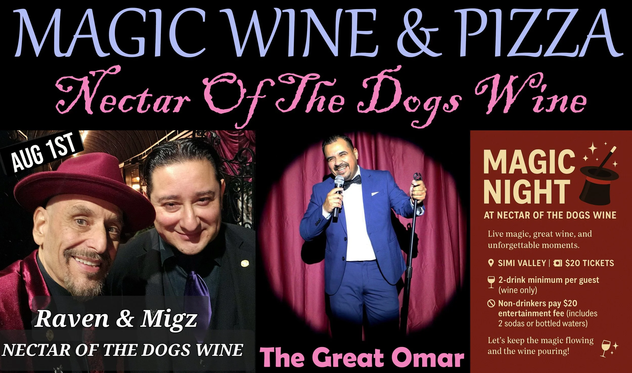 Join us for an unforgettable evening of magic, laughter, and wine in the heart of Simi Valley. Hosted by magicians Raven & Migz. Get tickets in link below!
